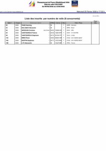 Liste des inscrits par numéro de voile (8 concurrents)