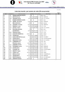 Liste des inscrits par numéro de voile (29 concurrents)